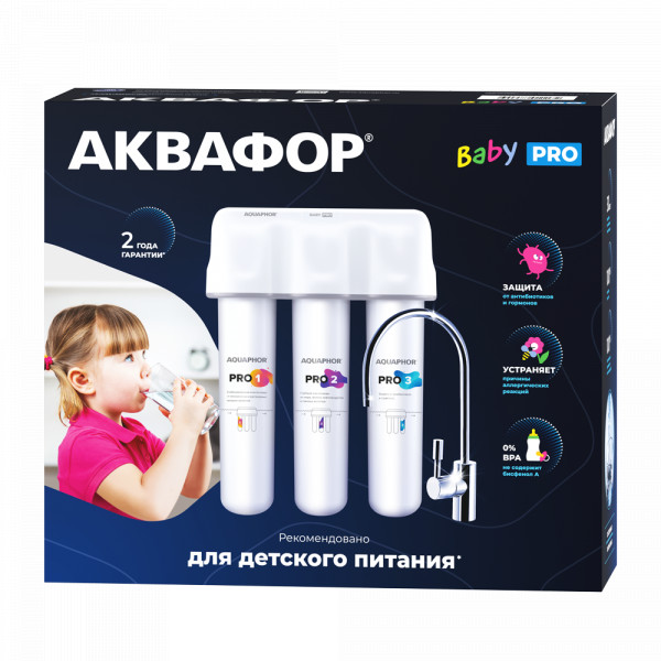 Обратноосмотические фильтры используются для абсолютной защиты от накипи, т.к. полностью устраняют соли жесткости из воды.нетФильтрующий модуль в комплектедаОтдельный краннетДавление в водопроводе не более, атмМаксимальное давление воды на входе в систему, при котором возможна стабильная работа фильтра.6,5Исходная водаЖесткая вода – вода с избытком минеральных солей. От нее появляется накипь в чайнике, известковый налет на сантехнике и разводы на посуде. Мягкая вода – та, в которой мало минеральных солей. Нет накипи в чайнике и разводов на посуде. Фильтры для мутной воды и фильтры от ржавчины, как правило, имеют несколько стадий очистки и дополнительный полипропиленовый картридж. Он задерживает механические частицы ила, песка и ржавчины и защищает картриджи более глубокой очистки.мягкаяЗащита от бактерийВсе проточные фильтры в той или иной степени защищают от бактерий. Например, добавление серебра препятствует их размножению. Это стандартная степень защиты. Если в семье есть дети, пожилые люди или аллергики, воду рекомендуется обеззараживать, то есть полностью удалять микроорганизмы. Повышенную защиту от бактерий дают фильтры с половолоконной мембраной. Это пучок трубок с порами размером 0,1 микрон (что в 1000 раз тоньше человеческого волоса) - бактерии и яйца паразитов “застревают”, как в “сите”. Полученную воду не придется кипятить и можно использовать для приготовления детского питания. Абсолютную защиту обеспечат фильтры обратного осмоса, которые не пропускают через обратноосмотическую мембрану ничего, кроме воды.стандартнаяПодходит для детей или аллергиковВрачи-иммунологи советуют дополнительно очищать воду для аллергиков, детей и людей с чувствительным пищеварением. Им нужна повышенная защита от бактерий, которую дают фильтры с половолоконной мембраной: например, Аквафор Кристалл ЭКО. Такие фильтры обеззараживают воду, отсекая бактерии механически, как сито, без добавления химии. Также подойдут фильтры обратного осмоса, которые не пропускают через обратноосмотическую мембрану ничего, кроме воды.да