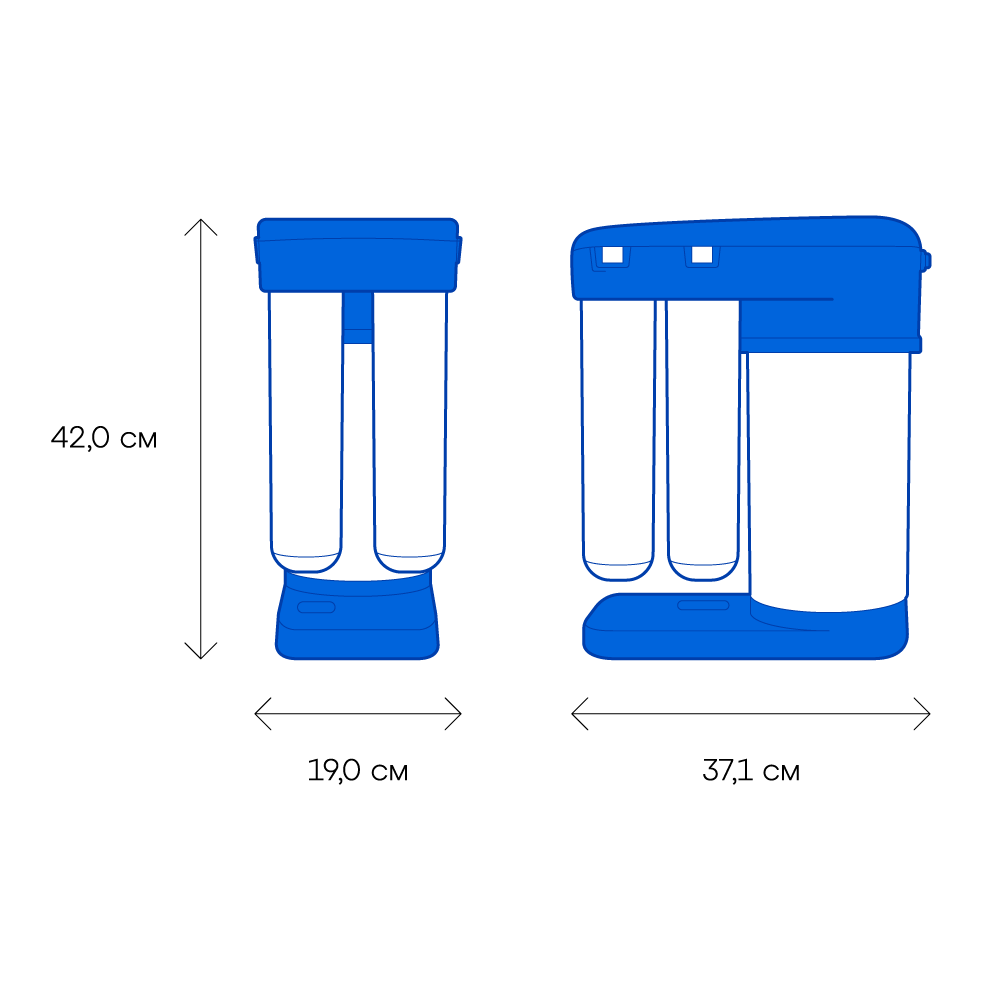 Обратноосмотические фильтры используются для абсолютной защиты от накипи, т.к. полностью устраняют соли жесткости из воды.даЧисло ступеней очисткиКартриджи последовательно очищают воду и от видимых примесей, и от растворенных. Первый картридж задерживает более крупные частицы, а каждый последующий - более мелкие. Чем больше ступеней - тем лучше фильтр очистит воду: поймает более мелкие видимые частицы ржавчины, песка и ила, успеет захватить из воды максимум растворенных примесей - хлора, нитратов, тяжелых металлов и других.4МинерализацияПроисходит после финишной очистки воды. Необходима прежде всего в фильтре обратного осмоса, поскольку такой фильтр полностью устраняет из воды все примеси, в том числе минералы. Минералы добавляются в оптимальной концентрации - для пользы и привычного вкуса воды.даПостфильтрацияФинальный этап очистки воды: картриджи постфильтрации удаляют самые мелкие механические частицы и кондиционируют воду, придавая ей более приятный вкус.даНакопительная емкостьОбычно нужна в фильтрах обратного осмоса. Глубокая фильтрация требует времени. Чтобы Вам не приходилось ждать, пока вода наберется в чайник или кастрюлю, почти во всех моделях используется накопительный бак для чистой воды или другая емкость. В стандартном фильтре обратного осмоса под мойку воды в баке достаточно для семьи из 5-6 человек.даФильтрующий модуль в комплектедаОтдельный крандаДавление в водопроводе не более, атмМаксимальное давление воды на входе в систему, при котором возможна стабильная работа фильтра.6,5Ширина, смОбратите внимание на габариты фильтра, и измерьте, сколько свободного пространства в предполагаемом месте установки.37,1Глубина, смОбратите внимание на габариты фильтра, и измерьте, сколько свободного пространства в предполагаемом месте установки.19,0Защита корпуса от гидроударовдаИсходная водаЖесткая вода – вода с избытком минеральных солей. От нее появляется накипь в чайнике, известковый налет на сантехнике и разводы на посуде. Мягкая вода – та, в которой мало минеральных солей. Нет накипи в чайнике и разводов на посуде. Фильтры для мутной воды и фильтры от ржавчины, как правило, имеют несколько стадий очистки и дополнительный полипропиленовый картридж. Он задерживает механические частицы ила, песка и ржавчины и защищает картриджи более глубокой очистки.любаяУстраняет мутностьМутность водопроводной воды может говорить о том, что в ней много мелких механических частиц. Важно, чтобы в фильтре был установлен дополнительные картридж механической предфильтрации (полипропиленовый) - он продлит жизнь остальным картриджам более тонкой очистки.даУстраняет ржавчину, бурый осадокЛюбой фильтр под мойку удалит из воды крупные и мелкие частицы ржавчины. Некоторые фильтры имеют повышенный ресурс по железу: они дольше служат в такой воде, поскольку лучше подходят для удаления из воды железа и механических частиц ржавчины.даЗащита от бактерийВсе проточные фильтры в той или иной степени защищают от бактерий. Например, добавление серебра препятствует их размножению. Это стандартная степень защиты. Если в семье есть дети, пожилые люди или аллергики, воду рекомендуется обеззараживать, то есть полностью удалять микроорганизмы. Повышенную защиту от бактерий дают фильтры с половолоконной мембраной. Это пучок трубок с по
